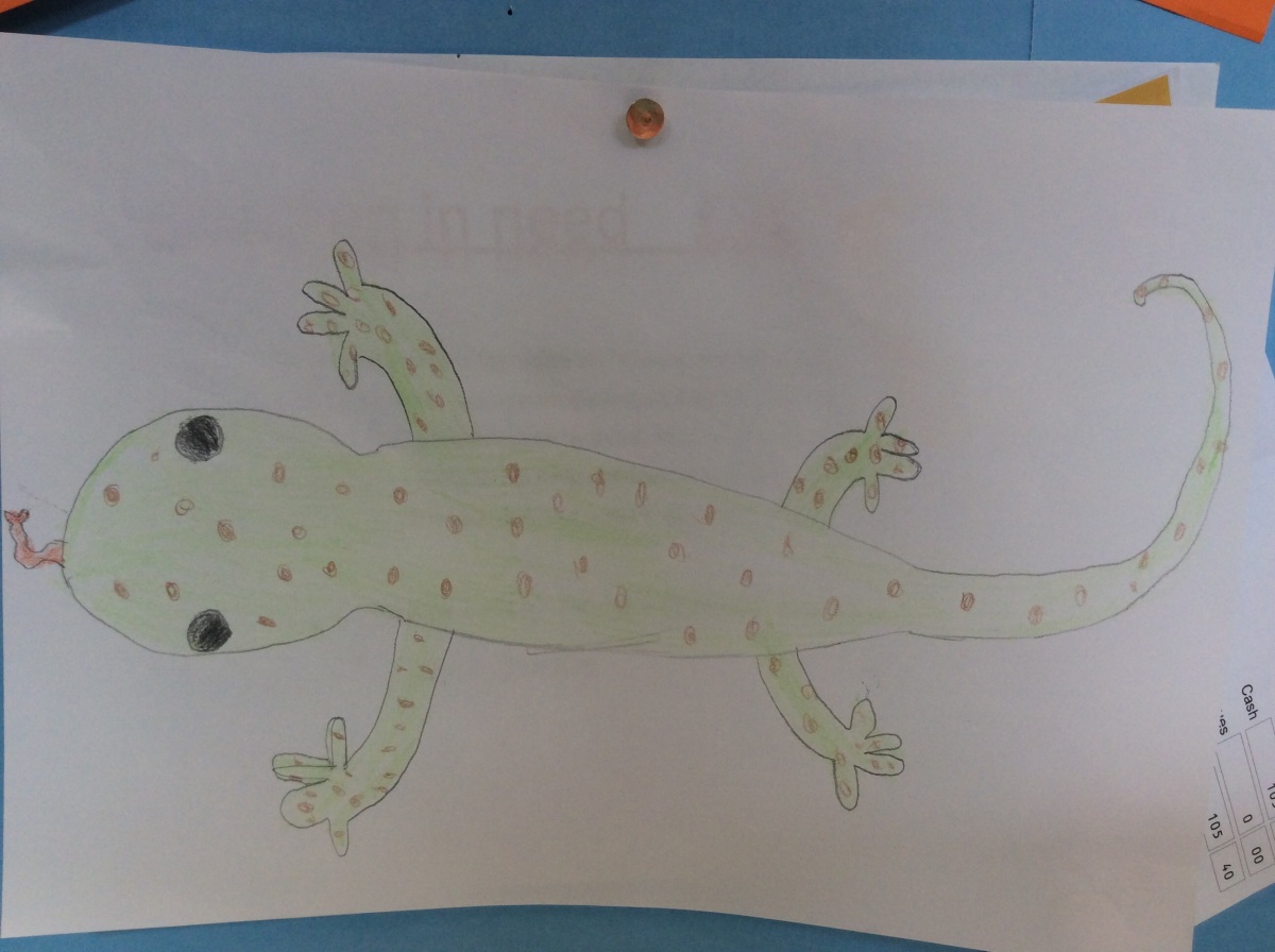 He is very slow,he has brown spots all over him. He plays football tennis and rugby.